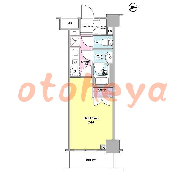 キッチン1.8帖 帖×1、洋室7.4帖 帖×1ペット相談可能楽器相談給湯有り。バストイレ別です。