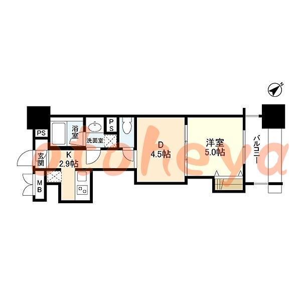 楽器可 ピアノ可 で 東京近郊の賃貸写真6 賃貸マンションをご案内します。キッチン2.9帖 帖×1、洋室4.5帖 帖×1、洋室5帖×1ペット相談可能楽器相談給湯有り。バストイレ別です。