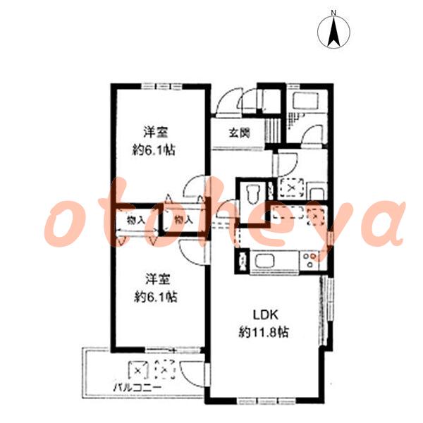 リビングダイニングキッチン11.8帖 帖×1、洋室6.1帖 帖×1、洋室6.1帖 帖×1楽器相談給湯有り。バストイレ別です。